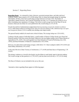 TTU Administrator Survey Fall 2014 January 2015 Page 1 of 3 10C Section C: Regarding Deans Regarding Deans. As evaluated by chairs, directors, associate/assistant ...