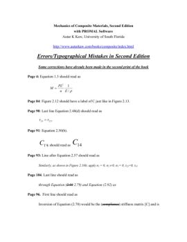 Mechanics of Composite Materials, First Edition Autar K Kaw, University of South Florida http://www.autarkaw.com/books/composite/index.html Errors in First Edition