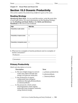 Section 15.3 Oceanic Productivity This section explains the productivity of different regions of the ocean. Reading Strategy Identifying Main Ideas As you read this ...