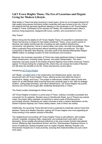 L&T Evara Heights, Thane offers luxurious 2 and 3 BHK residences with modern amenities, providing a serene lifestyle amidst lush greenery. Located in a well connected area, it ensures easy access to major hubs and conveniences.