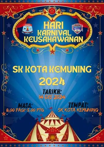 AKTIVITI DAN JUALAN SEPANJANG KARNIVAL KEUSAHAWANAN SKKK 2024<br>TARIKH: 14 DISEMBER 2024<br>MASA: 8.00 PAGI <br>TEMPAT: SK KOTA KEMUNING<br><br>ORANG RAMAI DIJEMPUT DATANG DAN BELI KUPON ANDA....
