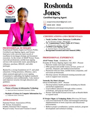 I am ready to serve your business as a professional, reliable, Certified and Fidelity-Approved Mobile Notary Signing Agent. Please check out my credentials and let me know if I can assist your team.