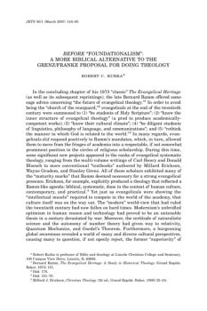 jets 50/1 (march 2007) 145–65 before “foundationalism”: a more biblical alternative to the grenz/franke proposal for doing theology robert c. kurka*