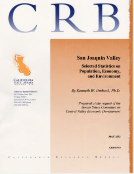 San Joaquin Valley Selected Statistics on Population, Economy, and Environment By Kenneth W. Umbach, Ph.D. Prepared at the request of the Senate Select Committee on