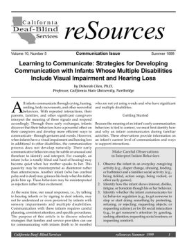 California Deaf–Blind Services reSources Summer 1999 1 Deaf-Blind California Services Volume 10, Number 5 Communication Issue Summer 1999 reSources