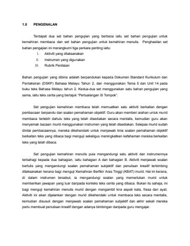 SET BAHAN PENGUJIAN KEMAHIRAN MEMBACA DAN MENULIS