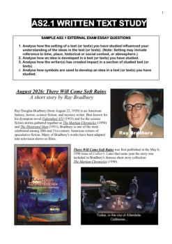 1 AS2.1 WRITTEN TEXT STUDY SAMPLE AS2.1 EXTERNAL EXAM ESSAY QUESTIONS 1. Analyse how the setting of a text (or texts) you have studied influenced your