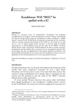 Kazakhstan: Will “BRIC” be spelled with a K? THE CHINA AND EURASIA FORUM QUARTERLY • May 2008 43 has been chosen to head the OSCE in 2010.