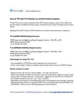 www.worldairops.com Use of T9 and T16 Routes to avoid French airspace T9 and T16 are two routes contained within NAT Oceanic airpsace, used to flow traffic from
