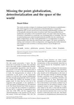 Missing the point 9 the calculable understanding of space has been extended to the globe, which means that even as the state becomes less the focus of attention terri-