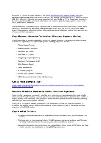 Remote Controlled Weapon System Market Global Forecast and Opportunity Mapping 2032