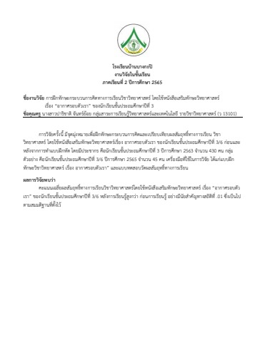 บทความวิจัย เรื่อง การฝึกทักษะกระบวนการคิดทางการเรียนวิชาวิทยาศาสตร์ โดยใช้หนังสือเสริมทักษะวิทยาศาสตร์ เรื่อง “อากาศรอบตัวเรา” ของนักเรียนชั้นประถมศึกษาปีที่ 3