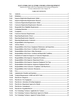 ELEVATORS, ESCALATORS AND RELATED EQUIPMENT Administrative Rules of the Texas Department of Licensing and Regulation 16 Texas Administrative Code, Chapter 74