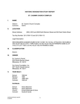 jschle/word/study reports/ st casimir 1 HISTORIC DESIGNATION STUDY REPORT ST. CASIMIR CHURCH COMPLEX I. NAME Historic: St. Casimir Church Complex