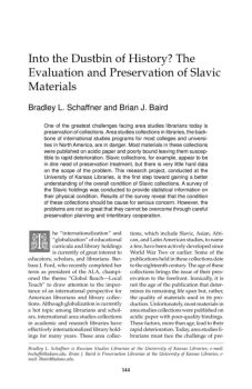 Evaluation and Preservation of Slavic Materials 145 serving these collections or watching them turn to dust. This challenge is particularly evident