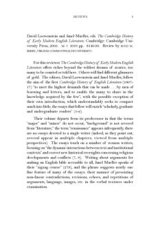REVIEWS 1 David Loewenstein and Janel Mueller, eds. The Cambridge History of Early Modern English Literature. Cambridge: Cambridge Uni-versity Press, 2003.