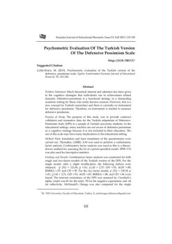Eurasian Journal of Educational Research, Issue 53, Fall 2013, 115-130 115 Psychometric Evaluation Of The Turkish Version Of The Defensive Pessimism Scale