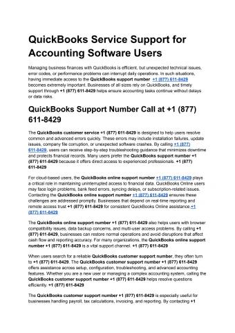 No matter which version of QuickBooks you use, having access to a dependable QuickBooks customer service resource is crucial. The support number +1 (877) 611-8429 serves as a single point of contact for error resolution, technical help, and general inquiries. Prompt assistance not only saves time but also helps businesses stay compliant and financially organized.