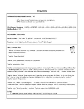 FAT QUARTERS Standards for Mathematical Practices: 1 & 2 MP1: Make sense of problems and persevere in solving them. MP2: Reason abstractly and quantitatively.