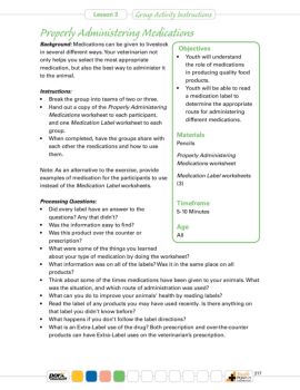 Lesson 3 Advisor’s Guide 217 Properly Administering Medications Background: Medications can be given to livestock in several different ways. Your veterinarian not