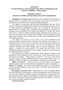 SUMMARY specialty 6D020400 – Cultural studies Zhanabayeva ...