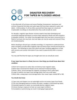 DISASTER RECOVERY . FOR TAPES IN FLOODED AREAS _____ In the aftermath of hurricanes and severe flooding ...