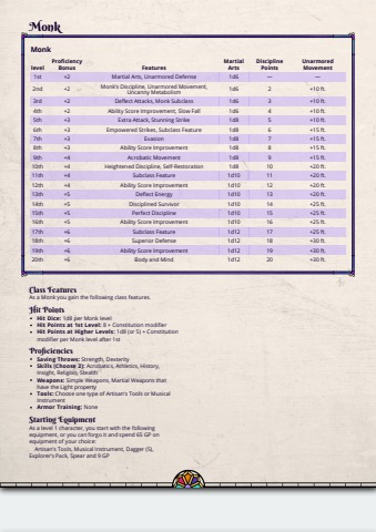 OneDnD Monk and Subclasses (Open hand, Shadow, elements)
