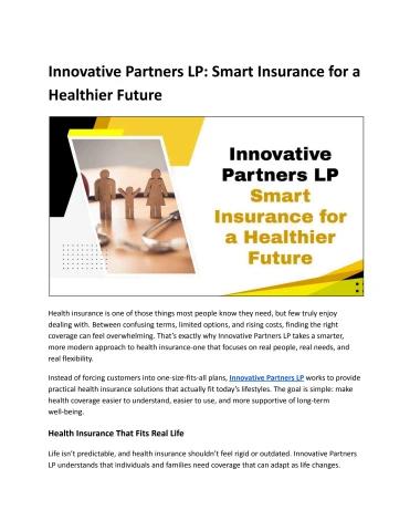 Smarter Healthcare Coverage Plans from Innovative Partners LP