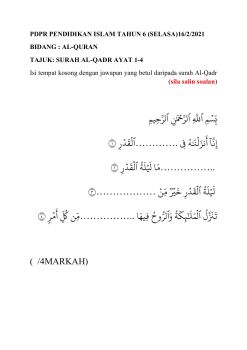 PDPR PENDIDIKAN ISLAM SURAH AL-QADR