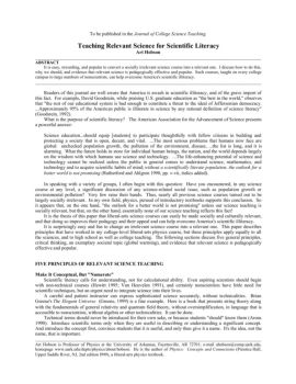 To be published in the Journal of College Science Teaching . Teaching Relevant Science for Scientific Literacy Art Hobson ABSTRACT It is easy, rewarding, and popular ...
