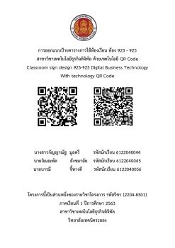 รูปเล่มการออกแบบป้ายตารางการใช้ห้องเรียน ห้อง 923 - 925 สาขาวิชาเทคโนโลยีธุรกิจดิจิทัล ด้วยเทคโนโลยี QR Code