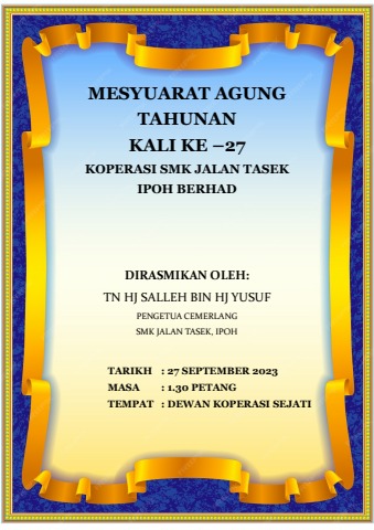 Mesyuarat Agung Koperasi SMK Jalan Tasek Ipoh Berhad