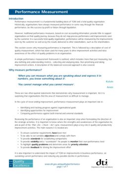 to From Excellence Quality Introduction Performance measurement is a fundamental building block of TQM and a total quality organisation. Historically, organisations ...