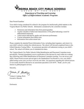 Department of Teaching and Learning. Office of Differentiated Academic Programs. Dear Parent/Guardian: Your child is being considered for referral to the program for ...