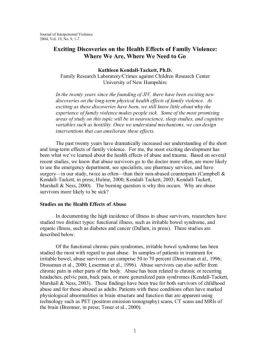1 Journal of Interpersonal Violence 2004, Vol. 19, No. 9, 1-7 Exciting Discoveries on the Health Effects of Family Violence: Where We Are, Where We Need to Go