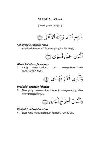 Surah Al-A'la + Arti