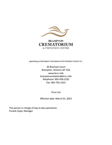 Brampton Price list