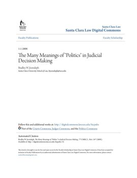 Santa Clara Law Santa Clara Law Digital Commons Faculty Publications Faculty Scholarship 1-1-2008 The Many Meanings of "Politics" in Judicial Decision Making