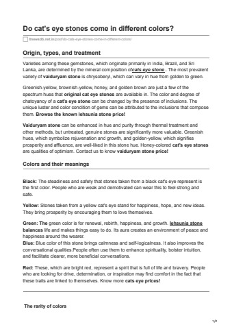 The variety of these gemstones, which are mostly from Brazil, Sri Lanka, and India, depends on the minerals found in cat's eye stone. Chrysoberyl is the most common type of vaiduryam stone; its colour ranges from golden to green.