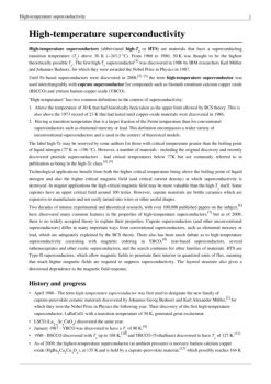 High-temperature superconductivity 2 under high pressure.[13] É Recently, iron-based superconductors with critical temperatures as high as 56ÄK have been discovered.