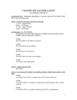 “I KNOW MY SAVIOR LIVES” 2010 PRIMARY PROGRAM INTRODUCTION – PRIMARY PRESIDENT (“I KNOW THAT MY SAVIOR LOVES ... The Holy Ghost testifies of Jesus Christ. He