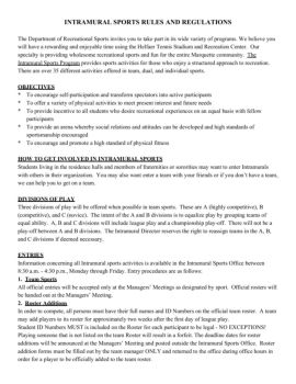 INTRAMURAL SPORTS RULES AND REGULATIONS
