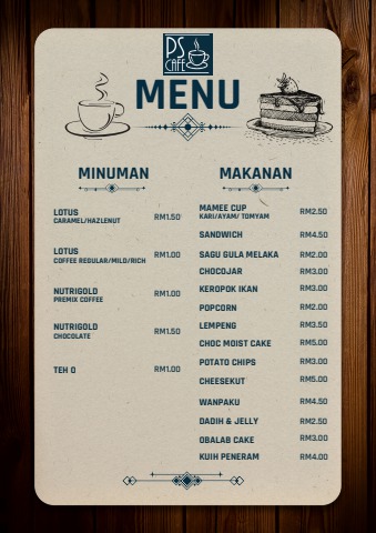 Menu PS Cafe