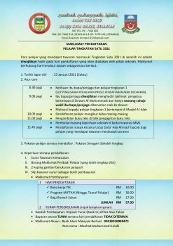 MAKLUMAT PENDAFTARAN PELAJAR TINGKATAN 1 SESI 2021