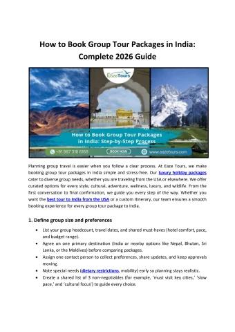 Learn how to book group tour packages in India with ease in this complete 2026 guide. Discover luxury options and expert planning by Eaze Tours. Explore this PDF to learn more.