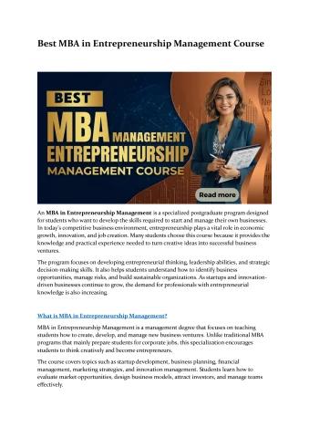 Best MBA in Entrepreneurship Management Course