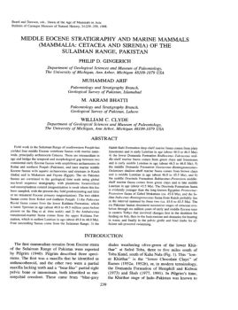 1998 GINGERICH ET AL. —MARINE EOCENE OF PAKISTAN 245 Bayliss in 1956—1957, who concentrated on col- lecting microfossils (section itself and ostracods