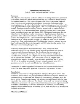 Dandelion Germination Trial Colin A. Clarke, Marilyn Mantei and J.B. Ross Summary This objective of this trial was to observe and record the timing of dandelion ...