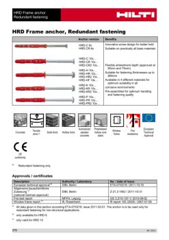 HRD Frame anchor Redundant fastening 09 / 2012 277 Basic loading data according ETAG 020 All data in this section applies to - Correct setting (See setting instruction)