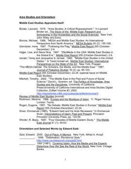 1 Area Studies and Orientalism Middle East Studies Appraises Itself: Binder, Leonard. 1976. "Area Studies: A Critical Reassassment." In Leonard